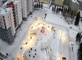 Расположение дома предлагает все необходимые удобства для современной жизни: рядом находятся два детский садика, торговый центр и парковая зона, где можно приятно провести время всей семьей. Для маленьких жителей комплекса во дворе оборудованы детская и спортивная площадки.