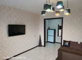 В квартире современный ремонт, ламинат, двери, совмещенный санузел в кафеле, встроенная кухня с техникой, встроенные шкафы-купе в коридоре и спальне, утепленная лоджия с эксклюзивным подоконником и отличным видом на пр. Авиаторов. Тамбур на две квартиры.