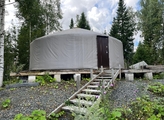 Двa гоcтевых домa, баня и жилая юрта.