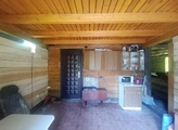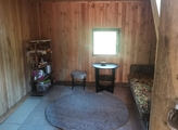 На первом этаже расположены кухня и спальня. Дом подходит для круглогодичного проживания, так как оборудован электрокотлом. Есть сауна с душевой комнатой,. Установлен в доме туалет . Бойлер для горячей воды. Вода поступает из собственной скважины, слив — в септик на три кольца. Электричество заведено на 380 кВт.